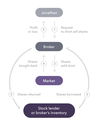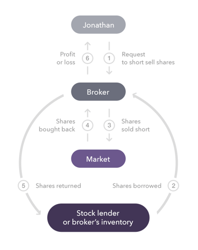 Jonathan's broker lends him the shares, borrowing them from its own inventory, another client's holdings, or perhaps another brokerage. It sells the shares for Jonathan and credits his account with the proceeds (£1000).